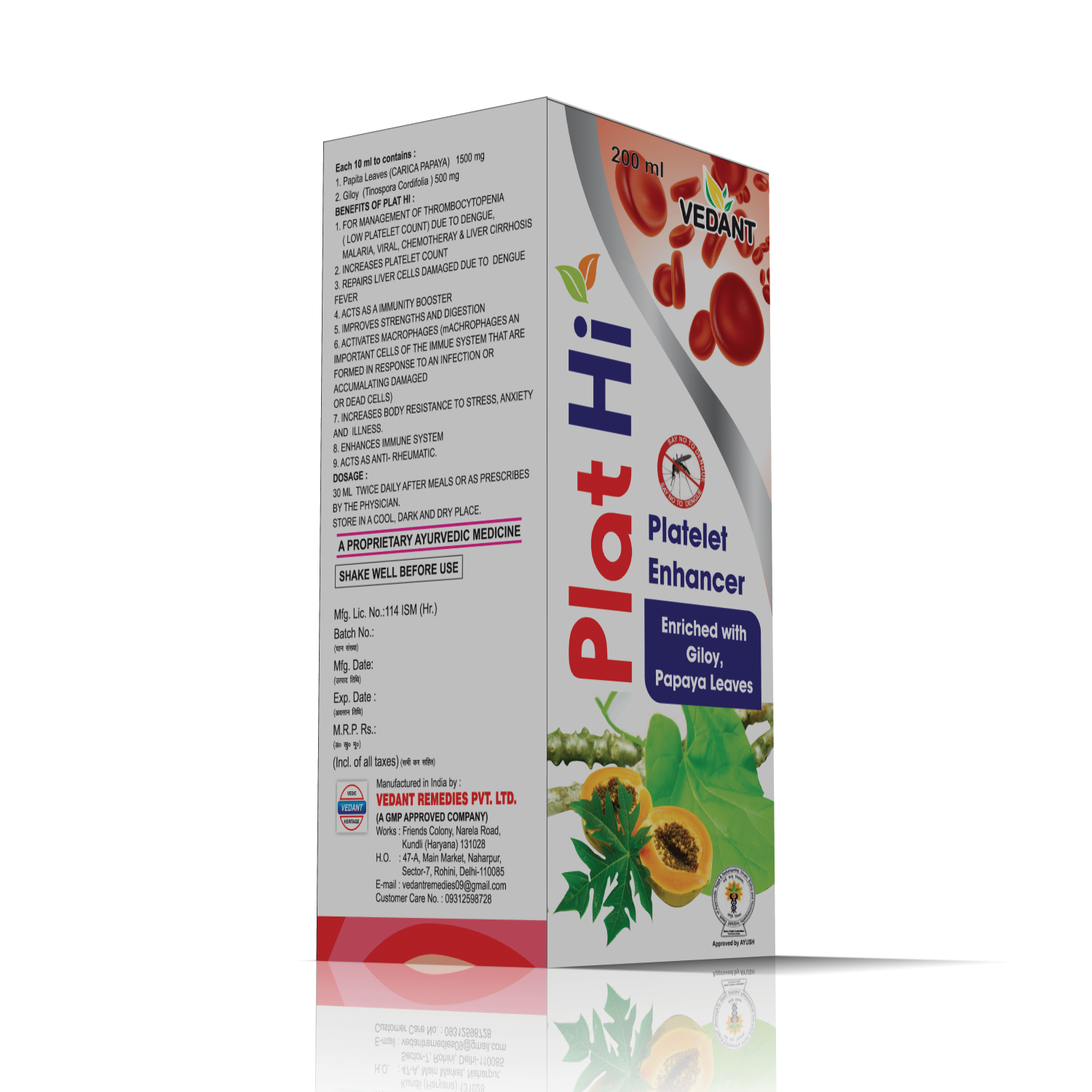 PLAT-HI is an Ayurvedic formulation designed to support the natural management of thrombocytopenia (low platelet count) caused by various infections and conditions such as Dengue, Malaria, Viral fevers, Chemotherapy, and Liver Cirrhosis.
